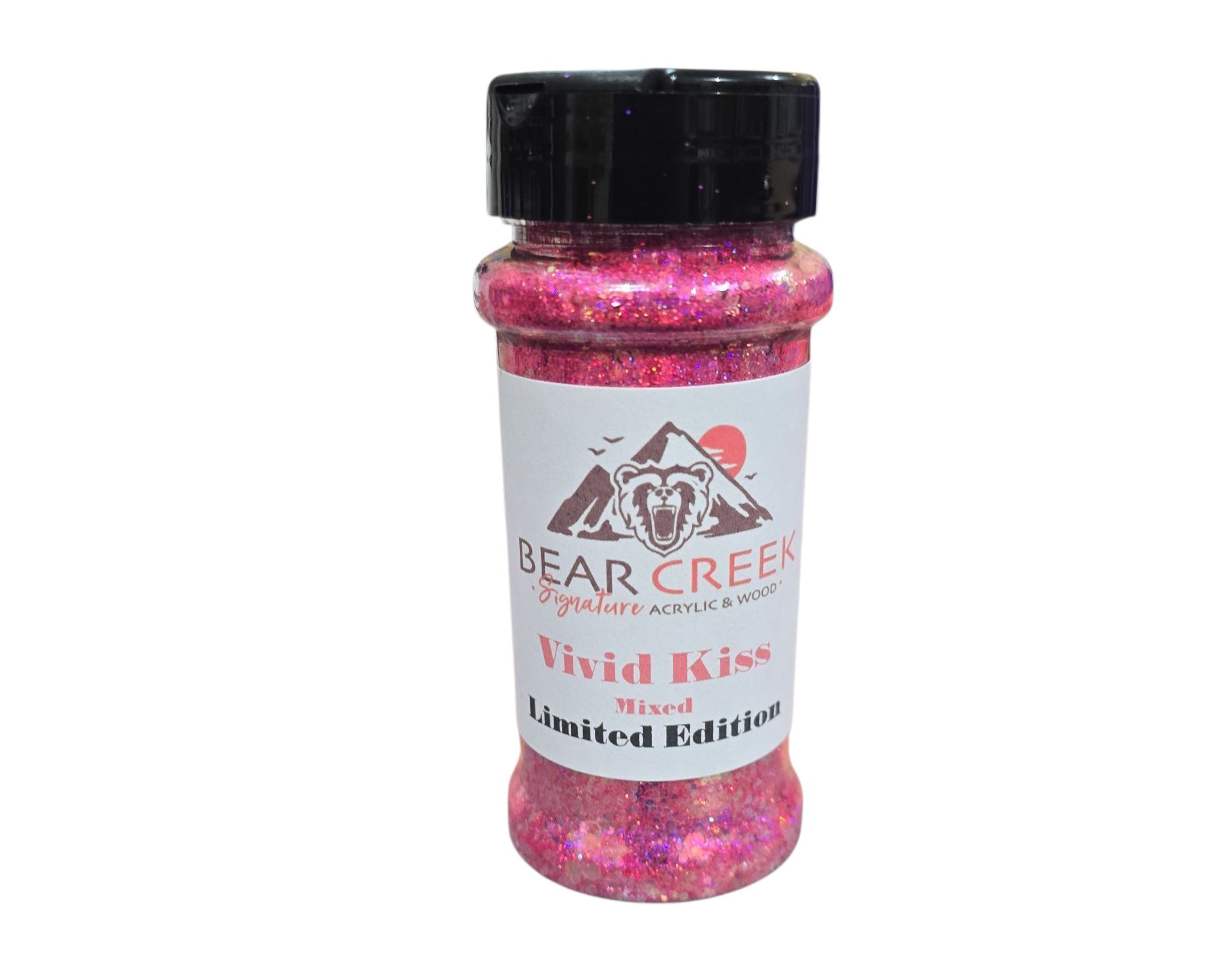 A pink-based shimmer with holographic attitude. Vivid Kiss features fine to mid-sized hexagonal flakes that reflect a spectrum of hues — from light blue to rich red — depending on light and angle. Its vibrancy intensifies with thickness, creating a surface that pulses with color and dimension. Bold, radiant, and unapologetically expressive.