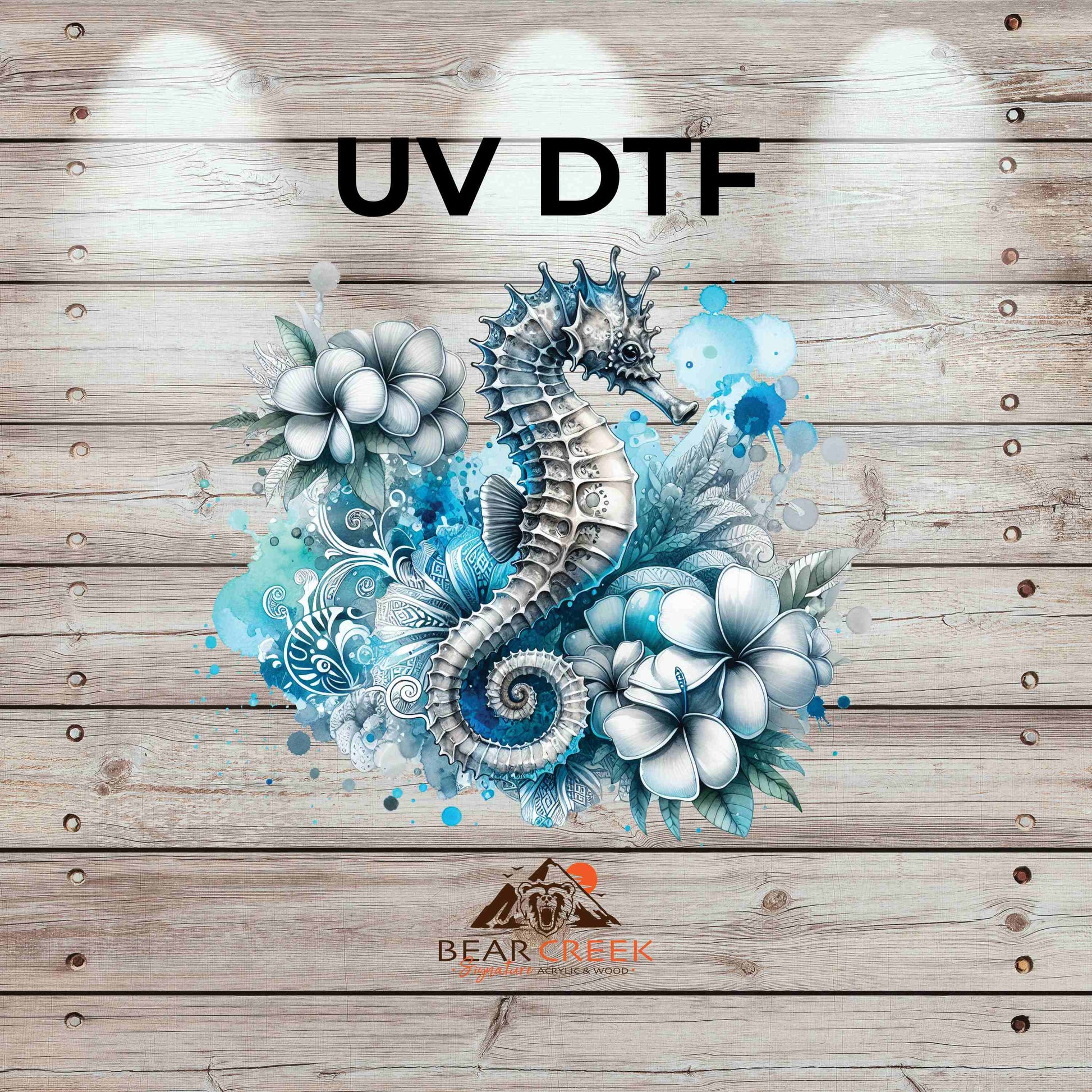 Seahorse Flower Burst 4.5-inch permanent sticker #186